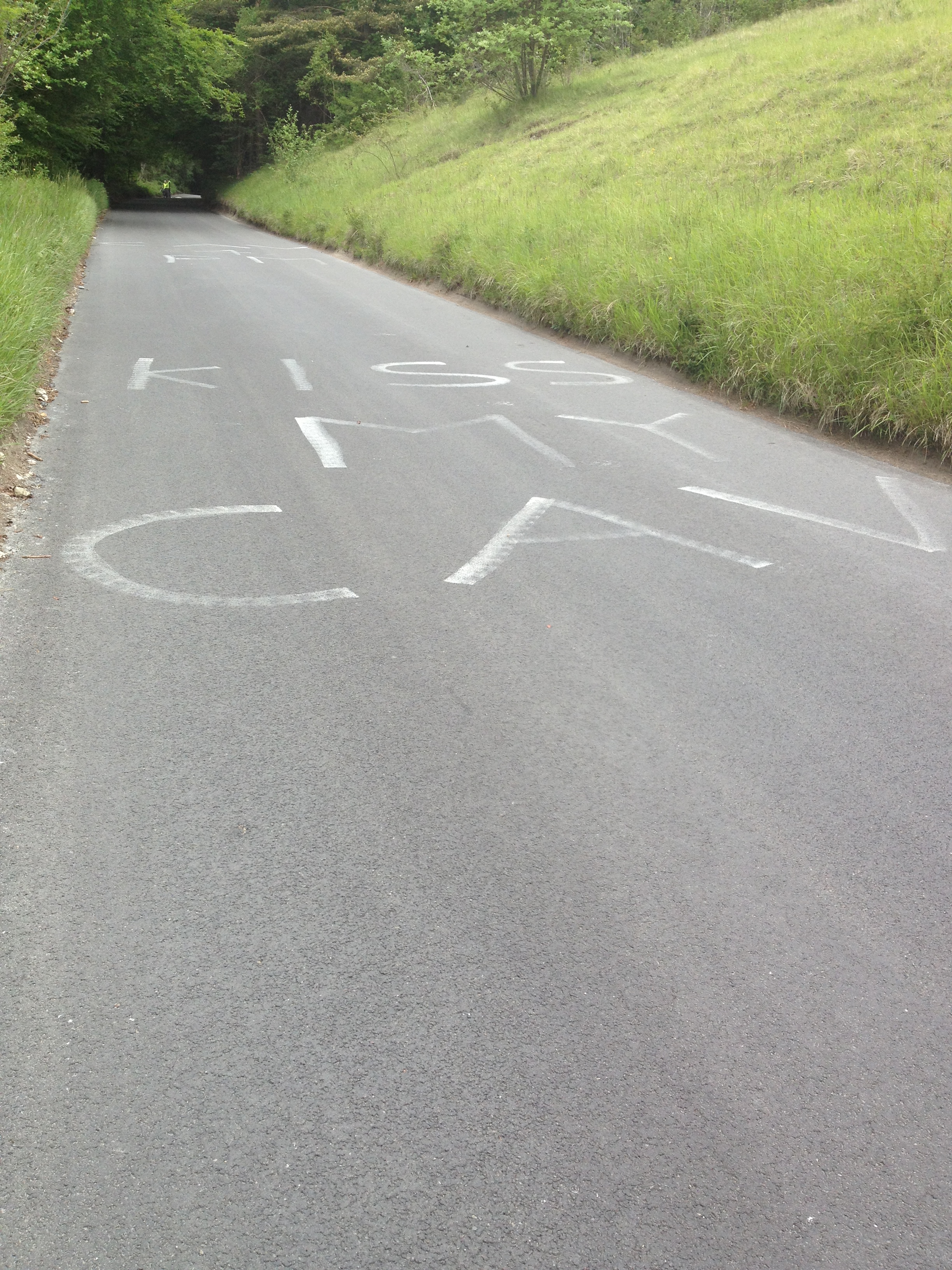 To encourage you to keep going you can still see the relics of the Olympic route with painted messages on the road to the great and the good along with my personal favourite ‘Kiss My Cav.’